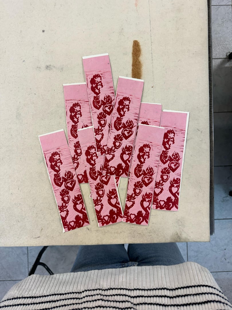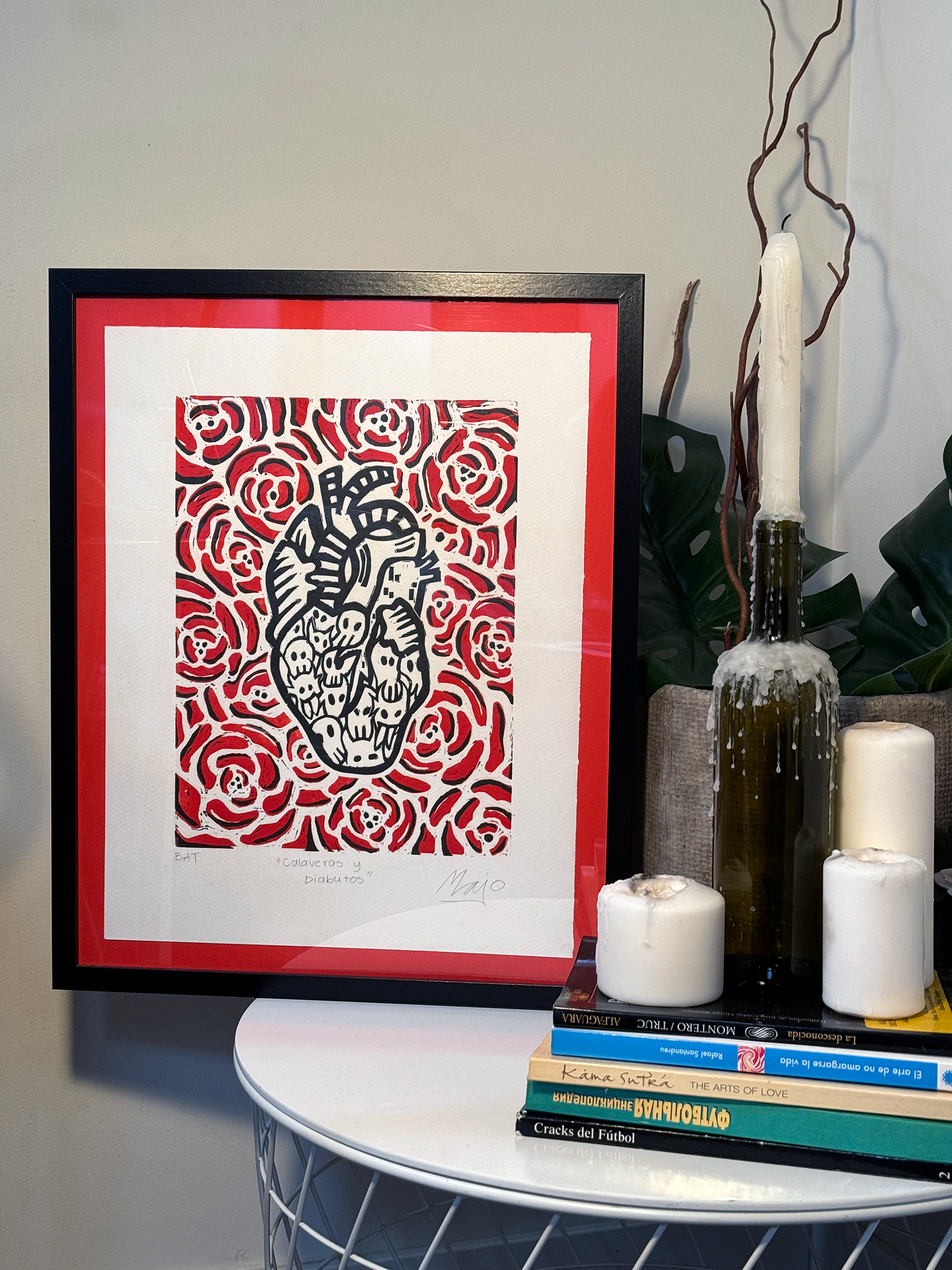 Mi nombre es María José Álvarez, soy una artista mexicana que se mueve constantemente entre México y España con la misión de llevar la alegría y el folclor mexicano reflejado en mis piezas a todo el mundo para que la gente pueda disfrutar aunque sea un poquito de algo que amo tanto que es mi país. Aunque he explorado un sinfín de medios desde la pintura hasta la serigrafía, el medio que exploro con mayor frecuencia es el grabado ya que me reta a contar historias a través de relieves que creo con la gubia y el punzón. Creo que el arte puede ser una gran forma de mirar nuestra vida cotidiana con otros ojos, unos ojos que están llenos de risas, nostalgia, amigos...
